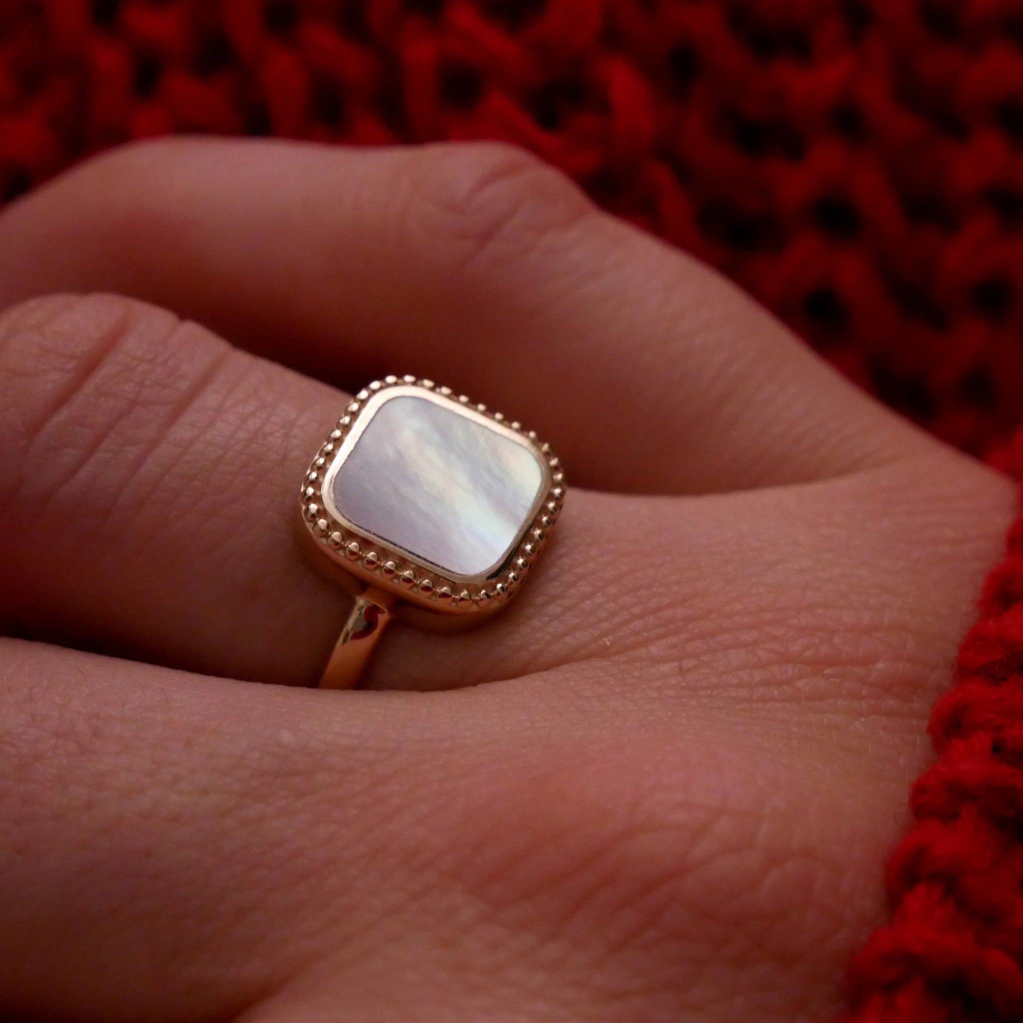 Bague plaqué or Destiny avec nacre naturelle – IRBISPARIS