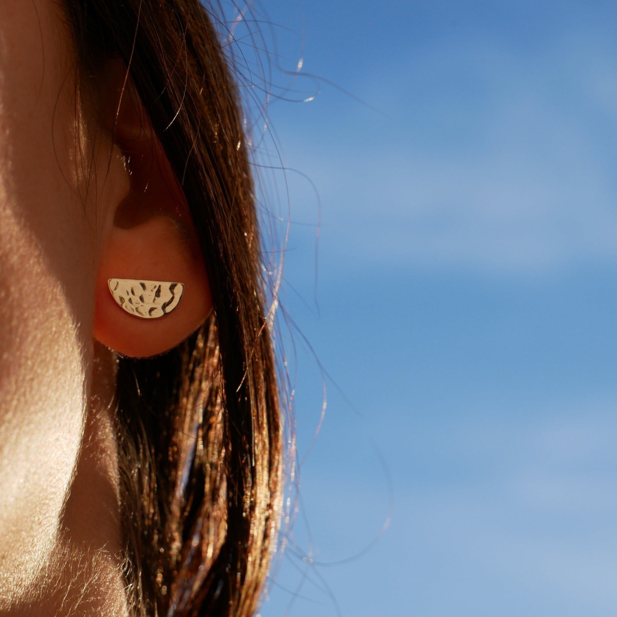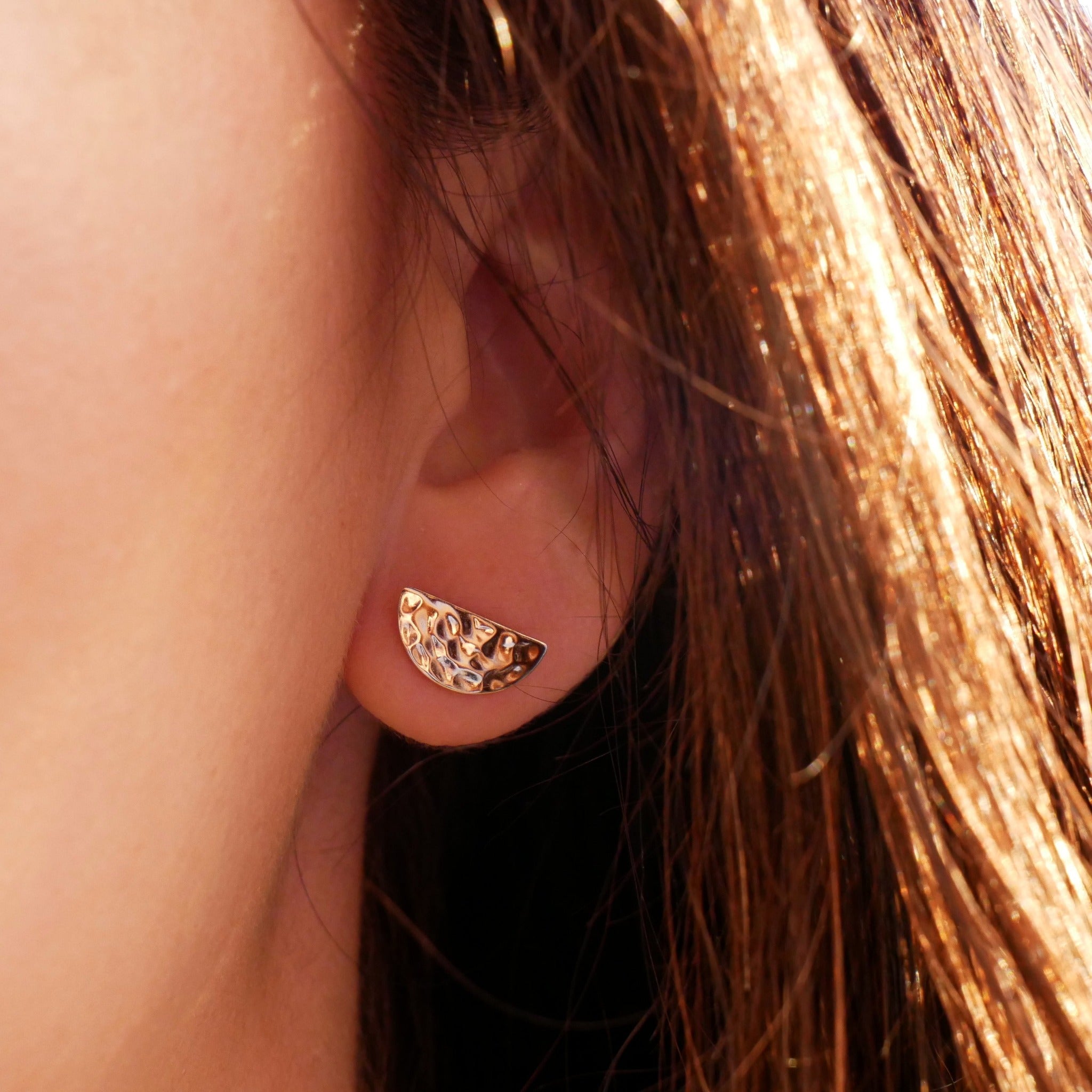 Les puces KILLA de texture délicatement martelée de forme demi-ronde, nous transporte à travers l'époque antique. Ce mélange raffiné chic ne laissera personne insensible à votre charme.