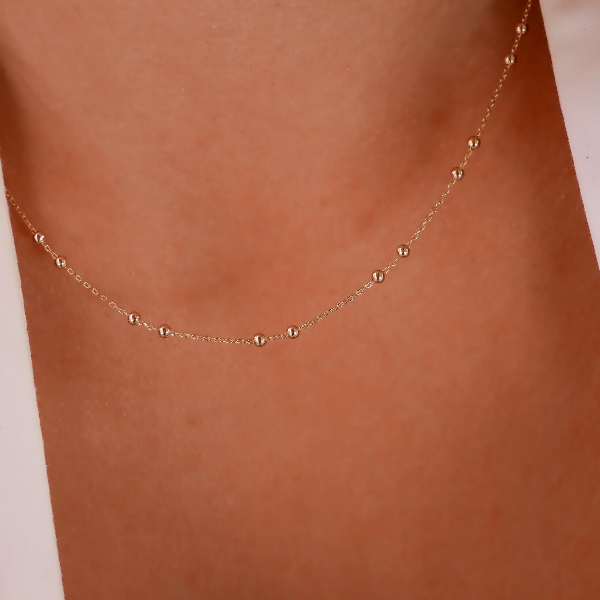 Le collier intemporel AURORA se compose d’une chaîne fine et de mini-billes. Minimaliste et chic, il est parfait à (s)’offrir.