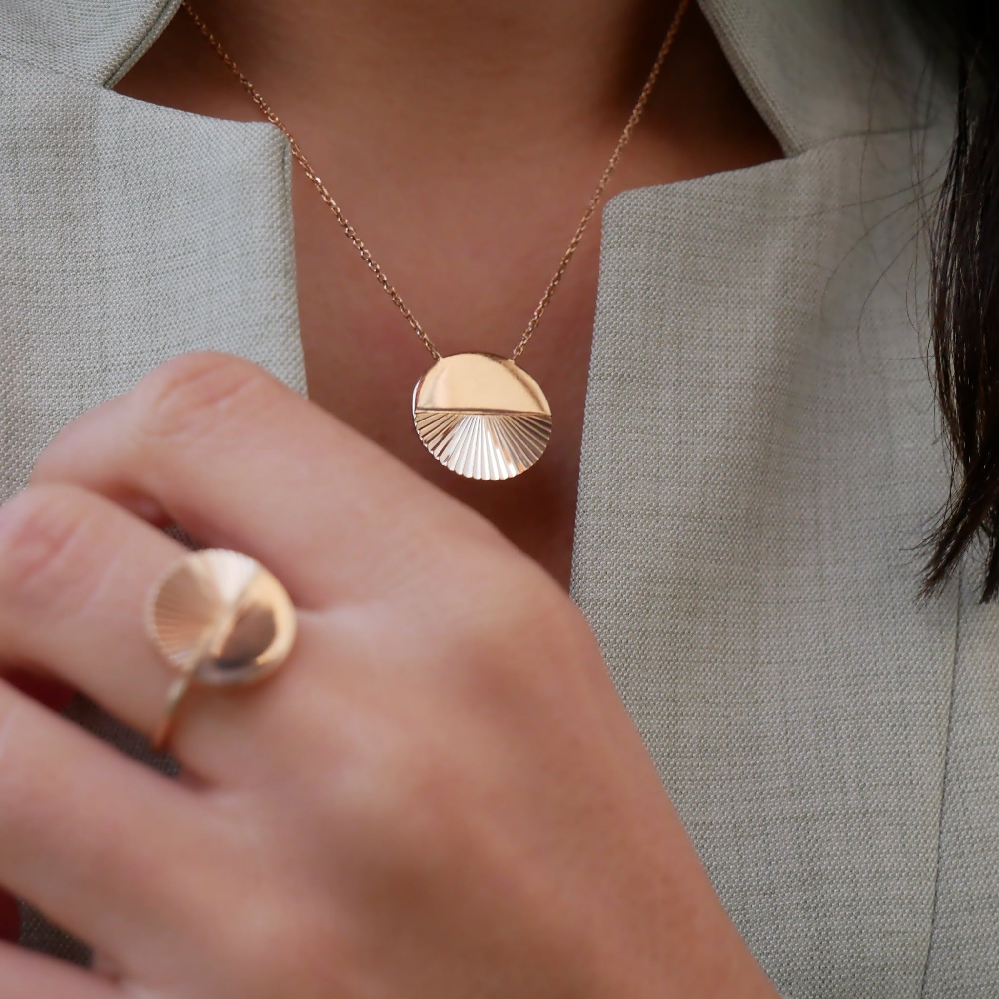 Le collier OMÉGA, fort de personnalité est un véritable petit rayon de soleil qui illuminera votre poitrine. L'originalité de ce bijou lui donne un aspect intemporel comme le temps qui s'écoule.